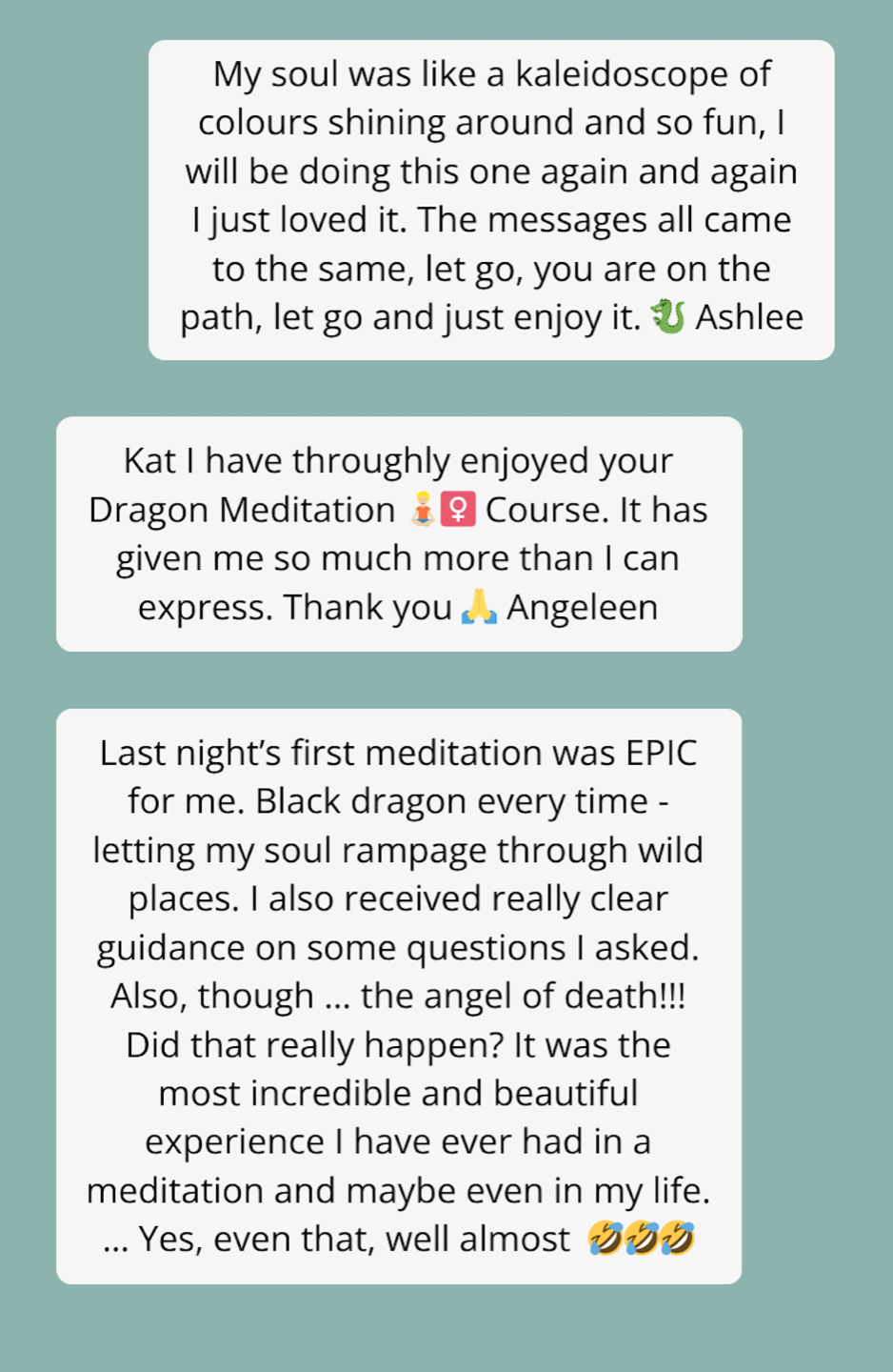 Working with the dragons has helped me tap into my inner knowledge, both to receive messages to help my health (emotional, mental and physical) as well as my loved ones. The dragons bring me clarity, peace and love and it is instant. It is something I can do driving the kids to school, when I’m doing my dishes or when I have a quiet moment to myself. Kat is an intuitive, kind and knowledgeable facilitator and I cannot recommend doing this dragons course with her enough!Â