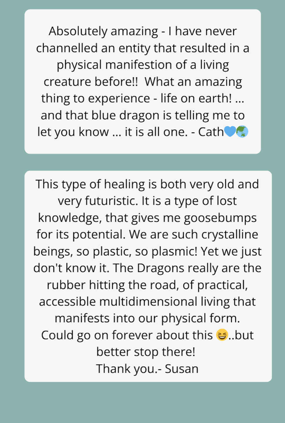 When you step into Dragon energy with an open mind and heart, be prepared to be WOWED. This journey will take you to realms of immense GRACE, STRENGTH, SELF DISCOVERIES and UNLIMITED POSSIBILITIES. All the while being held in the space of bountiful LOVE that these beautiful, majestic creatures hold.